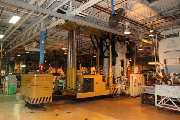 Mullins Rigging disassembly of overhead crane from the Watervliet Arsenal using four cranes.