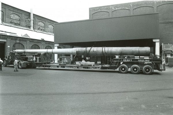 Mullins Rigging load and transport – 155 Howitzer cannon “muffler” used in testing of experimental cannon shells